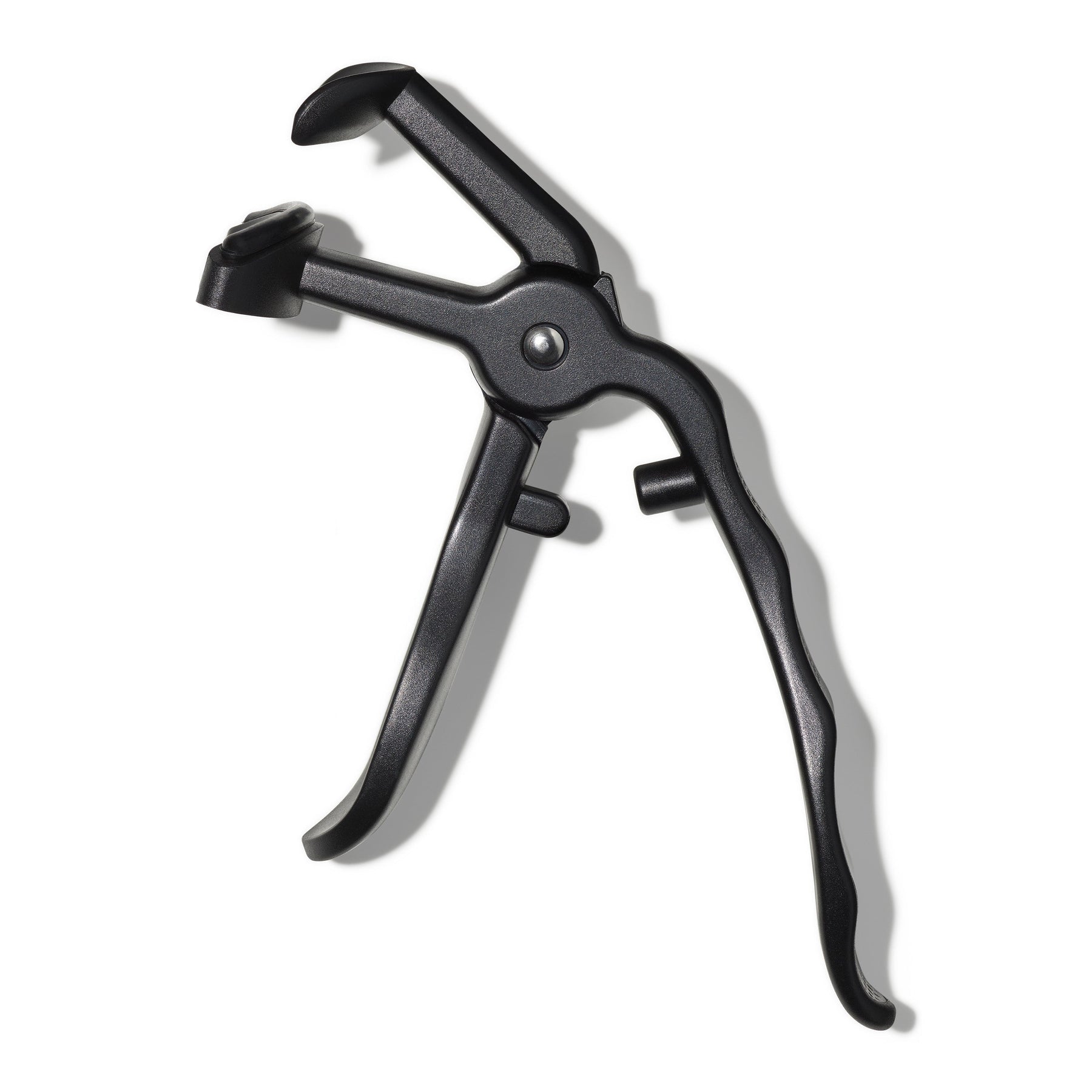 Step 1: Place your thumb on the handle with the single dip. Place each remaining finger in the four individual dips on the other handle.